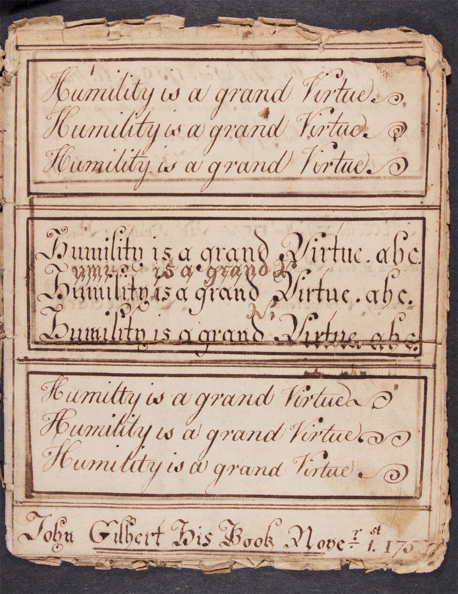 This image, courtesy Dartmouth College Library, is from the larger collection that Ray Nash collected and used when he was researching and writing about American penmanship. His work sparked my interest to gather samples and to begin to understand them.